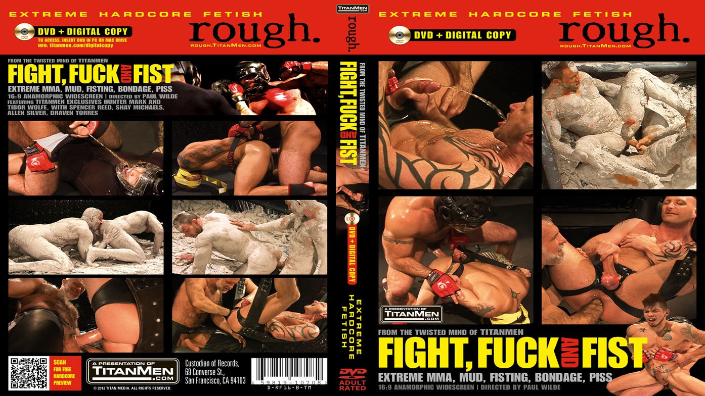 Think you've seen it all? Then feast on these three filthy scenes of geared-up and stripped-down edge play. FIGHT FUCK and FIST, the latest fetish title from Titan's Rough Series, will push you to the brink with relentless man-on-man butt-plowing, mud wrestling, and ass-fisting action. Muscle god Spencer Reed and hot, scrappy Draven Torres duke it out in boxing gear, till Spencer pins Draven, ties him up, soaks him in piss, and fucks him on the mat and in the air, dominating his ass to the point of explosion. Well-matched muscle pigs Shay Michaels and Hunter Marx flip flop in a pit of mud, battling for top, till Hunter takes Shay's built, eager ass from behind, plowing him till both men are covered in mud and cum. Cock-rising chemistry sizzles between handsome daddy Alan Silver and inked pig Tibor Wolfe, as Alan feasts on Tibor's prized ass, rimming, fingering, fucking and finally fisting him in a sling, to a piss-soaked, load-drenched finale.