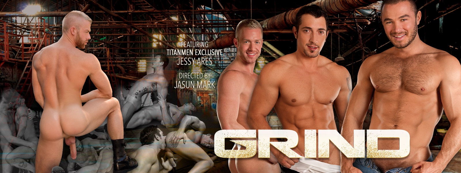 A deep kiss, your groins and beards affixed to each other. Lips sealed tightly around the shaft, planted to the base. Ass cheeks squeezing, riding down to the root. Do you know how to Grind like you mean it? Let TitanMen exclusive Jessy Ares and his friends show you how it’s done. After voraciously sucking Jessy Ares’ uncut monster, James Corman offers his ass as the top grunt fucks him. Jimmy Durano sees his sketch come to life with the arrival of model Cavin Knight, whose cock stays rock hard as he gets plowed by the artist. A tattoo parlor gets down and dirty as Collin Stone sucks bud Christopher Daniels and ink artist Caleb Colton, a flip fuck closing out the action.