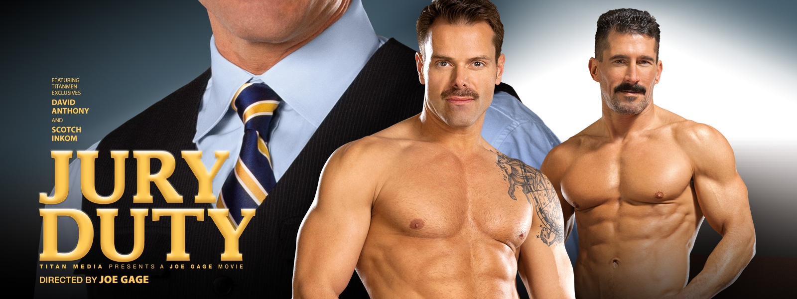 A handyman, a high school principal, a network engineer... they're just a few of the men presiding over a landmark obscenity trail. The sexual tension mounts in the hall of justice, where underlying passions erupt as Jury Duty intensifies. Crafted by legendary director Joe Gage and headlined by TitanMen exclusives David Anthony and Scotch Inkom, it proves that a hung jury is the best verdict. And before it's over, everyone will be guilty as sin.... After a busy day of deliberations, opinionated Scotch Inkom sparks a sexual frenzy with fellow sequestered jurors Bronson Gates and Sven Norse. By-the-book foreman Dirk Caber gets seduced by beefy security guard Roman Wright, who pulls the stud into the utility room for an oral encounter. The video that started the trial is all the evidence the jury needs, sparking a multi-sequence scene that starts with the whole cast worshipping David Anthony's mammoth meat in an unforgettable suck session. A parade of fucks follow as Anthony slams Scotch Inkom before Roman Wright manhandles Dirk Caber and Ethan Hudson -- who then gets plowed by Bronson Gates before getting between an Anthony/Sven Norse sandwich.